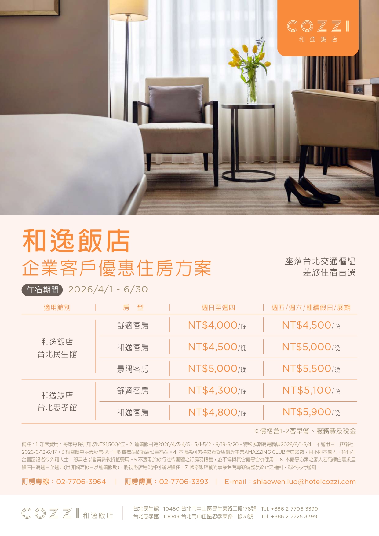 1. 享有優惠房價,優惠房價每季更新(詳以下表格)